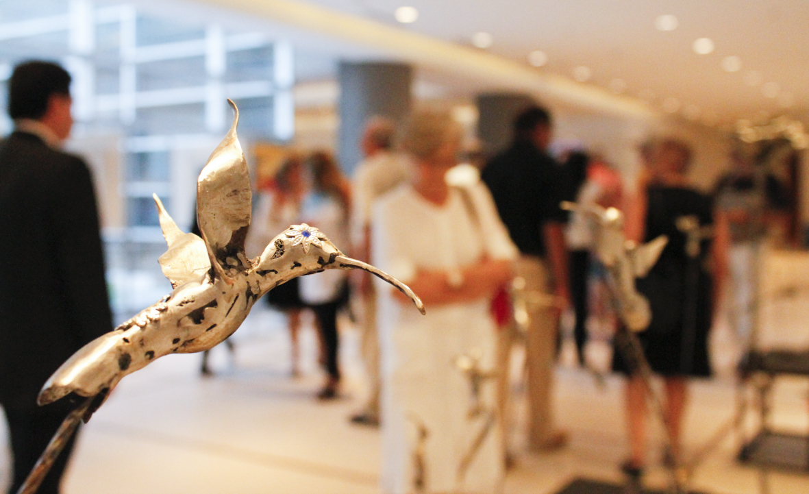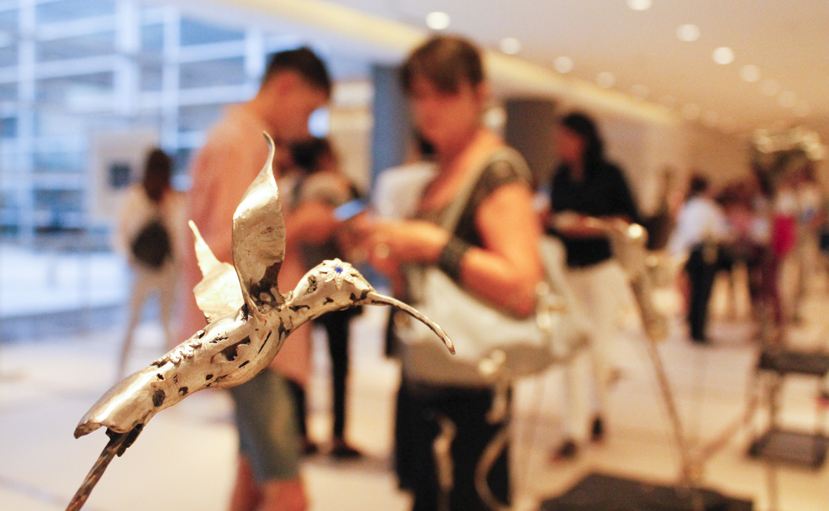 Las esculturas de Mónica Souza remiten al carácter mágico de los colibríes. Presentes en numerosos cuentos, mitos y leyendas indígenas de América, el ave se ha convertido en una constate simbólica y estética del arte del continente. Por su parte, el pincel de Susana Villegas nos abre la puerta a un mudo abstracto, donde el color, la naturaleza y sus formas se mezclan generando un acto pictórico único.