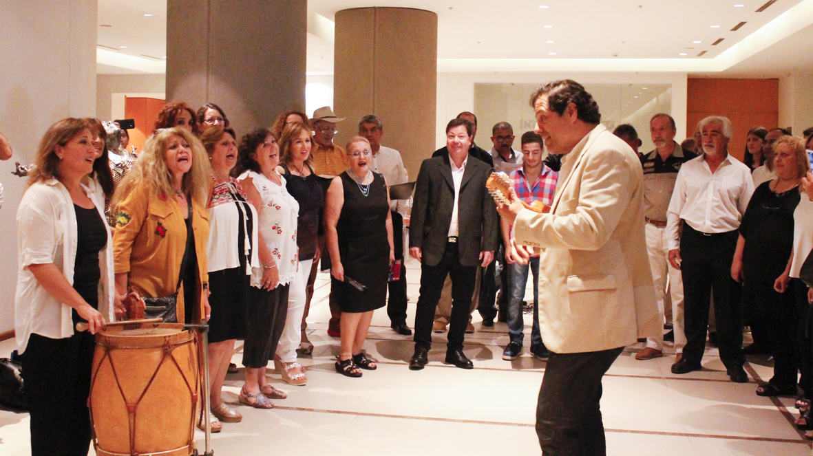 El evento contó con la participación especial de Guaymallén Coral, dirigido por Javier Rodríguez. Los integrantes de la agrupación, desprovistos de sus habituales atuendos, se mezclaron entre el público asistente para sorprenderlos con un flashmob. Luego de las palabras de apertura de la muestra, desde atrás de los colibríes de Souza, y las pinturas de Villegas se fueron acoplando inesperadas voces que inundaron la sala con “Canción con todos”