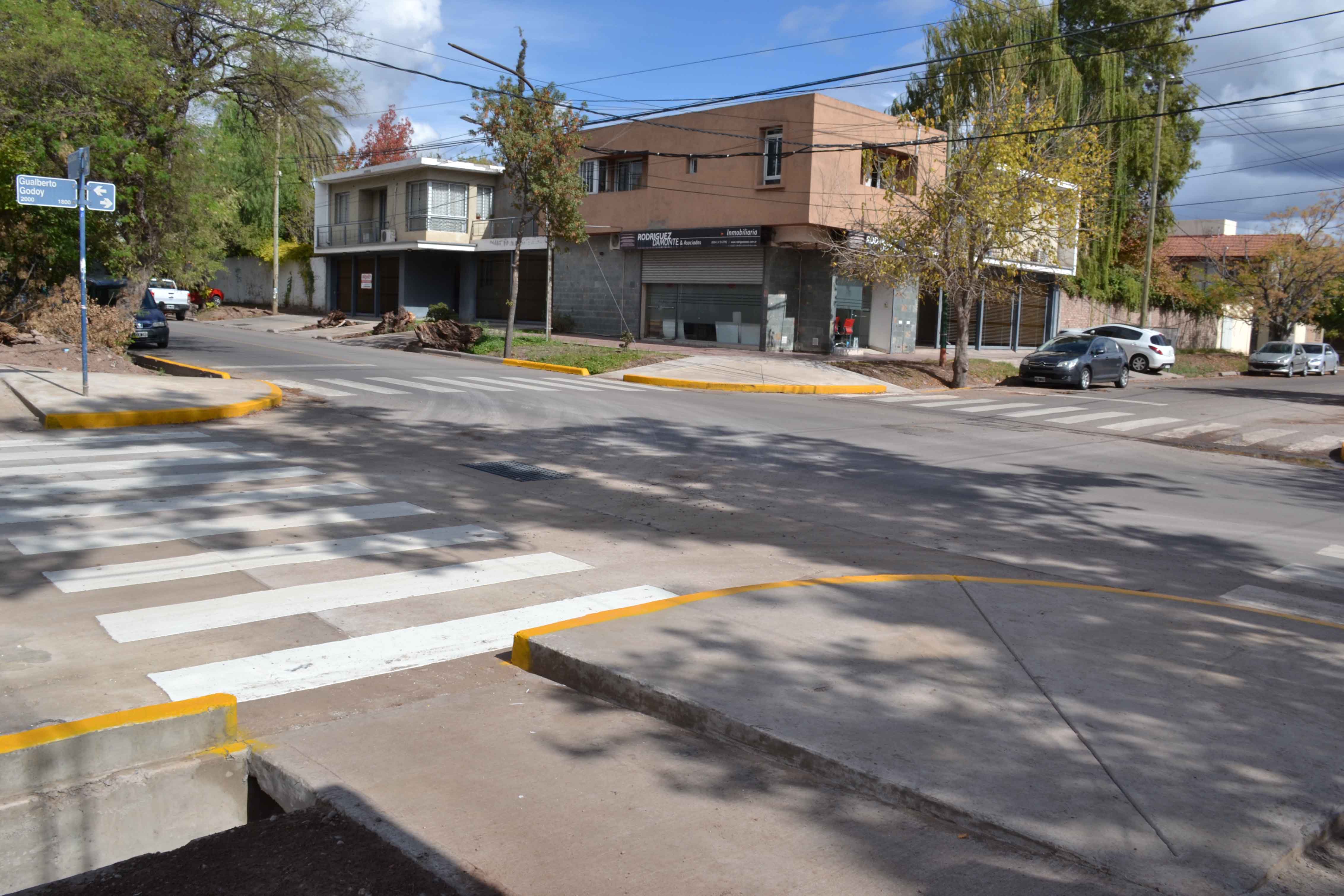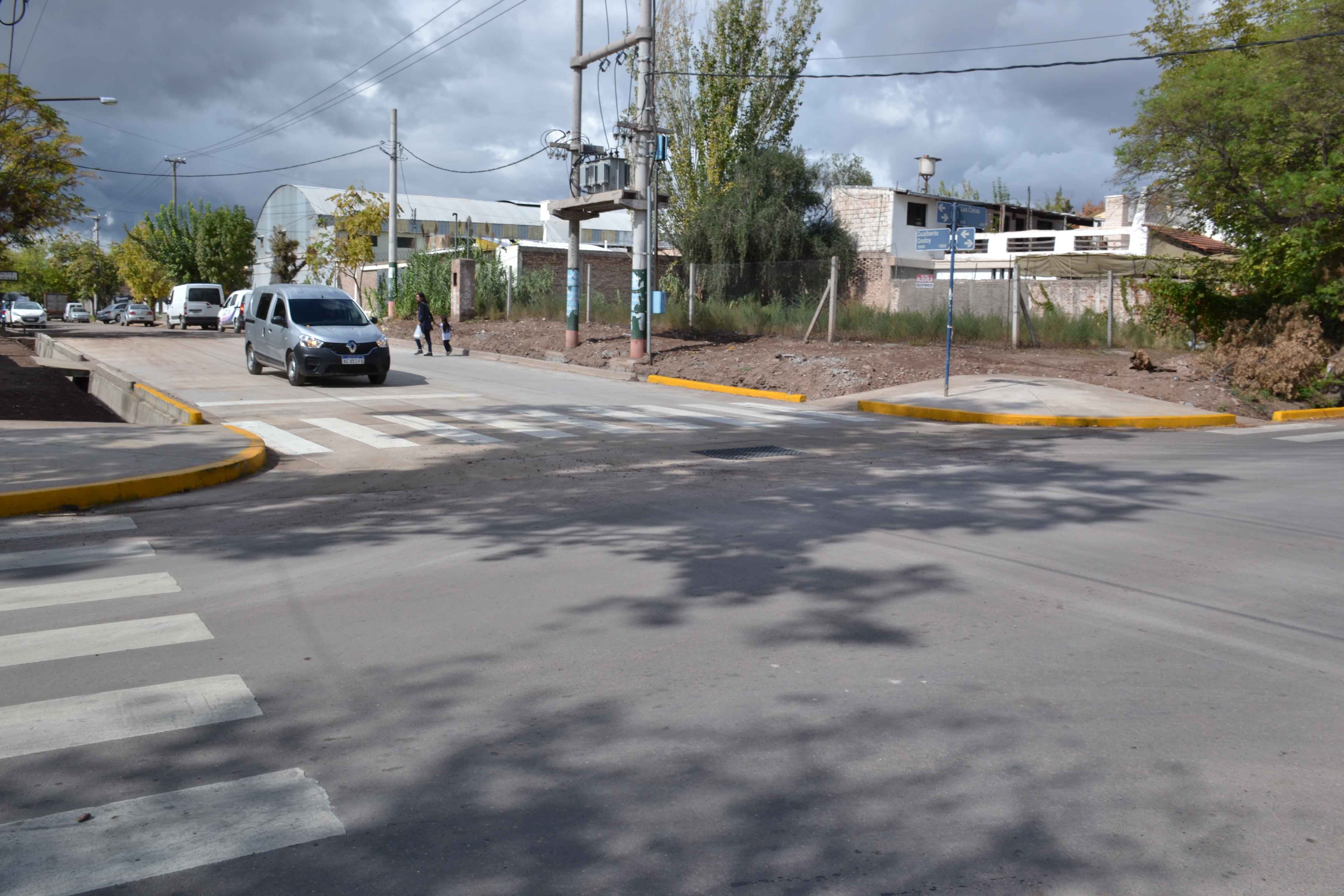Este lunes quedó habilitada al tránsito la intersección de calles Gualberto Godoy y Las Cañas, en el distrito homónimo. Allí se construyeron nuevas losas de hormigón desde unos metros antes de llegar al cruce, sobre Godoy, arteria sobre la que también se han encarado obras viales tras renovación de redes de servicio.