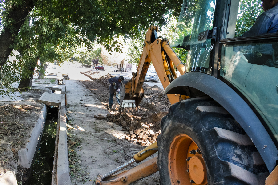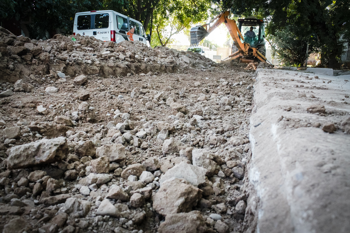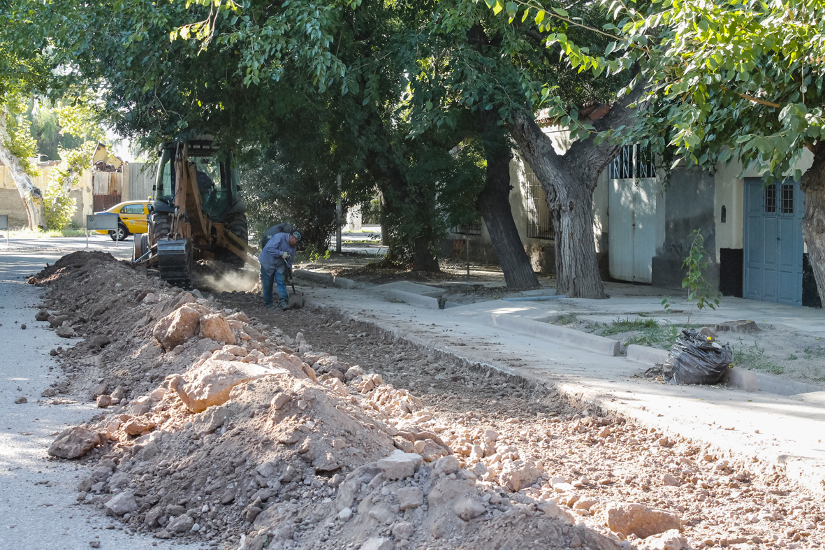 En las dos primeras cuadras, tomando como punto de partida calle Río Negro, AySAM había ejecutado la renovación de la red cloacal, que se encontraba en muy mal estado. Por eso, se trabaja en una base y compactación especial sobre el eje central donde se produjo la zanja de obra, para luego sí dar las condiciones de reencarpetado.