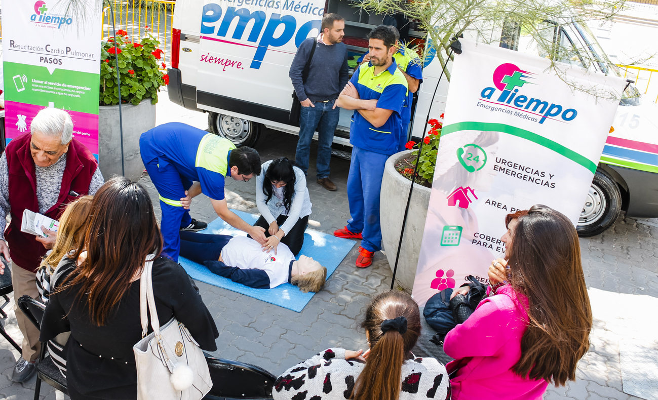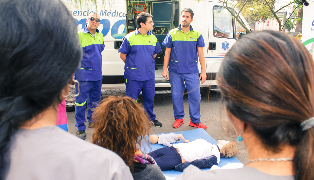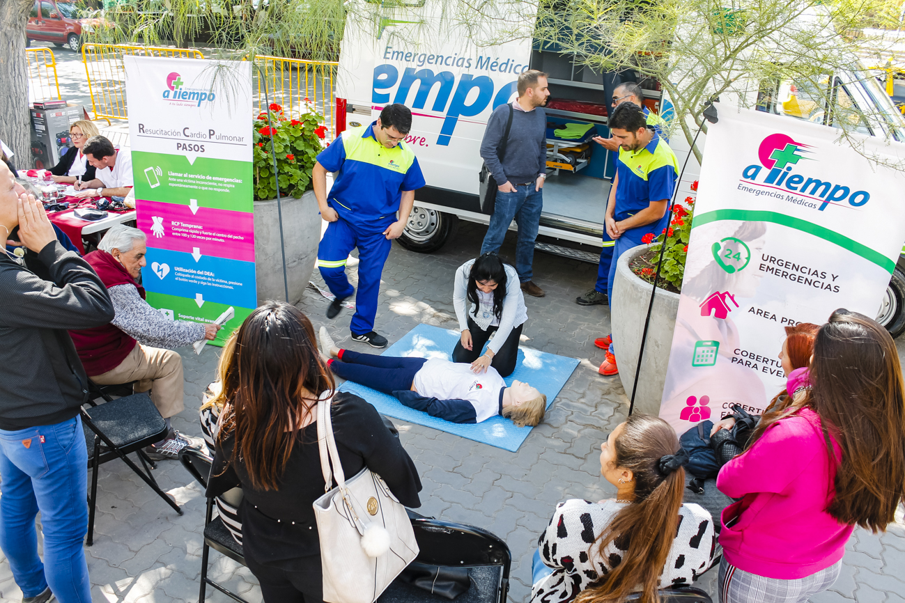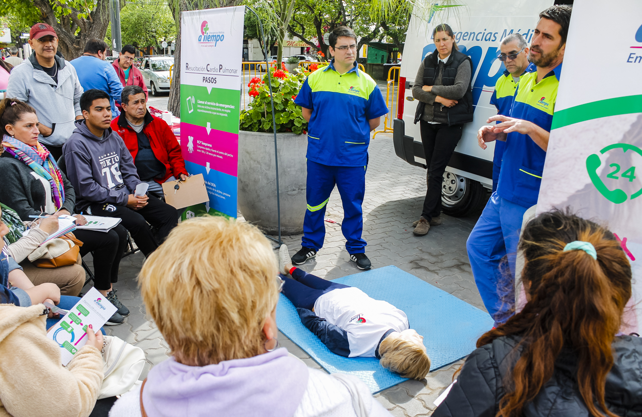 En este punto, se capacitó a la población acerca de técnicas de reanimación cardiopulmonar (RCP) y la concientización sobre medidas sencillas y seguras para salvar vidas, principalmente cuando se espera la llegada de un móvil de urgencia para asistir al paciente en riesgo.