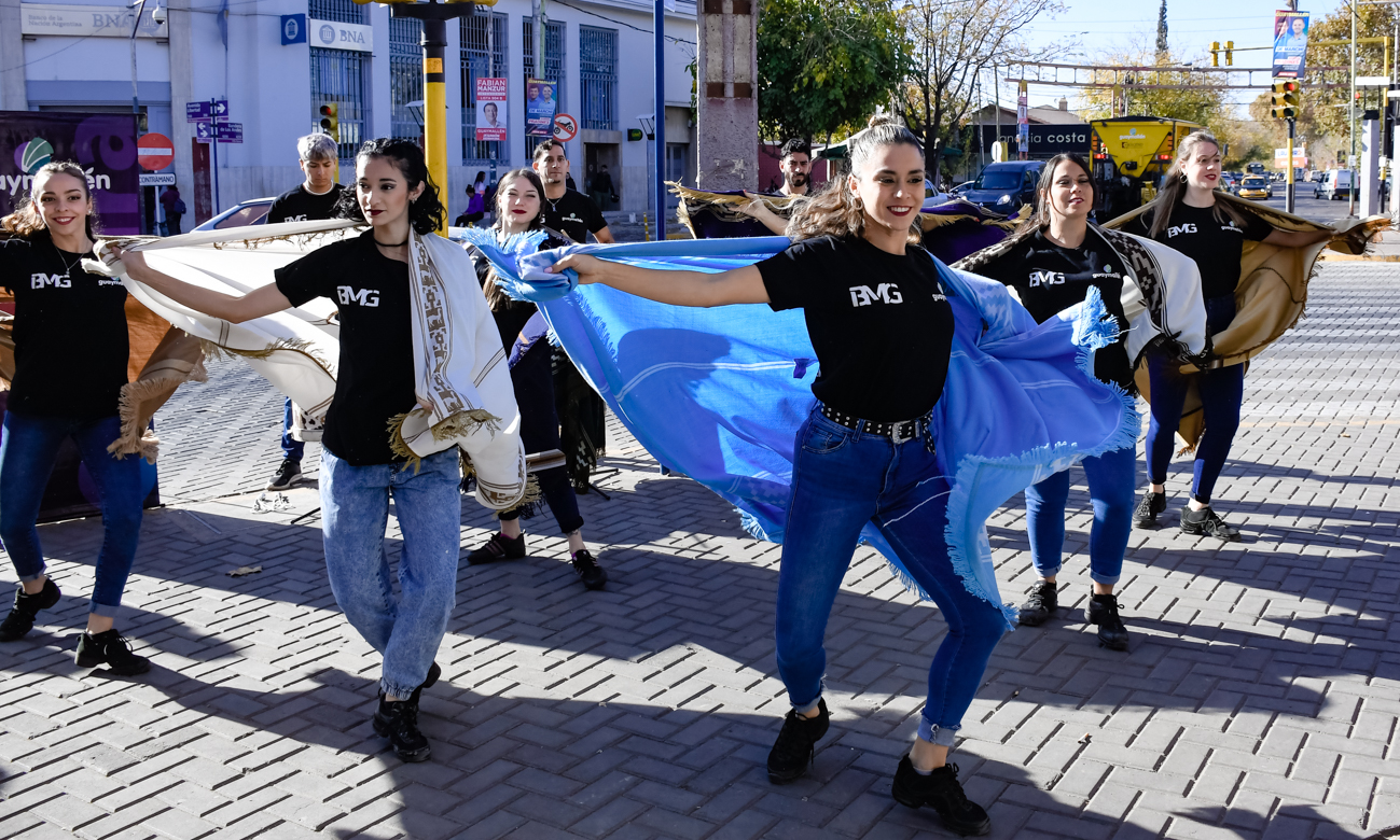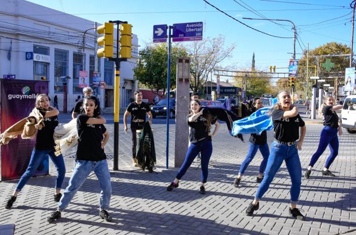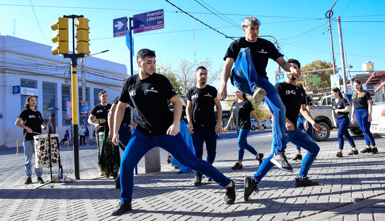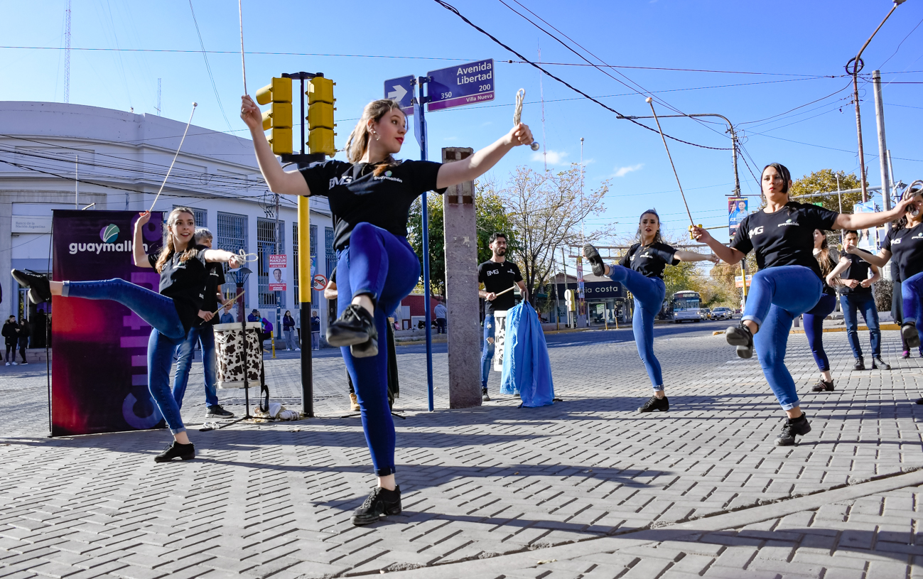 En el marco de las actividades programadas por las celebraciones del mes aniversario del departamento, este lunes el Ballet Municipal de Guaymallén realizó un flashmob en la intersección de las calles Libertad y Bandera de Los Andes, de Villa Nueva.