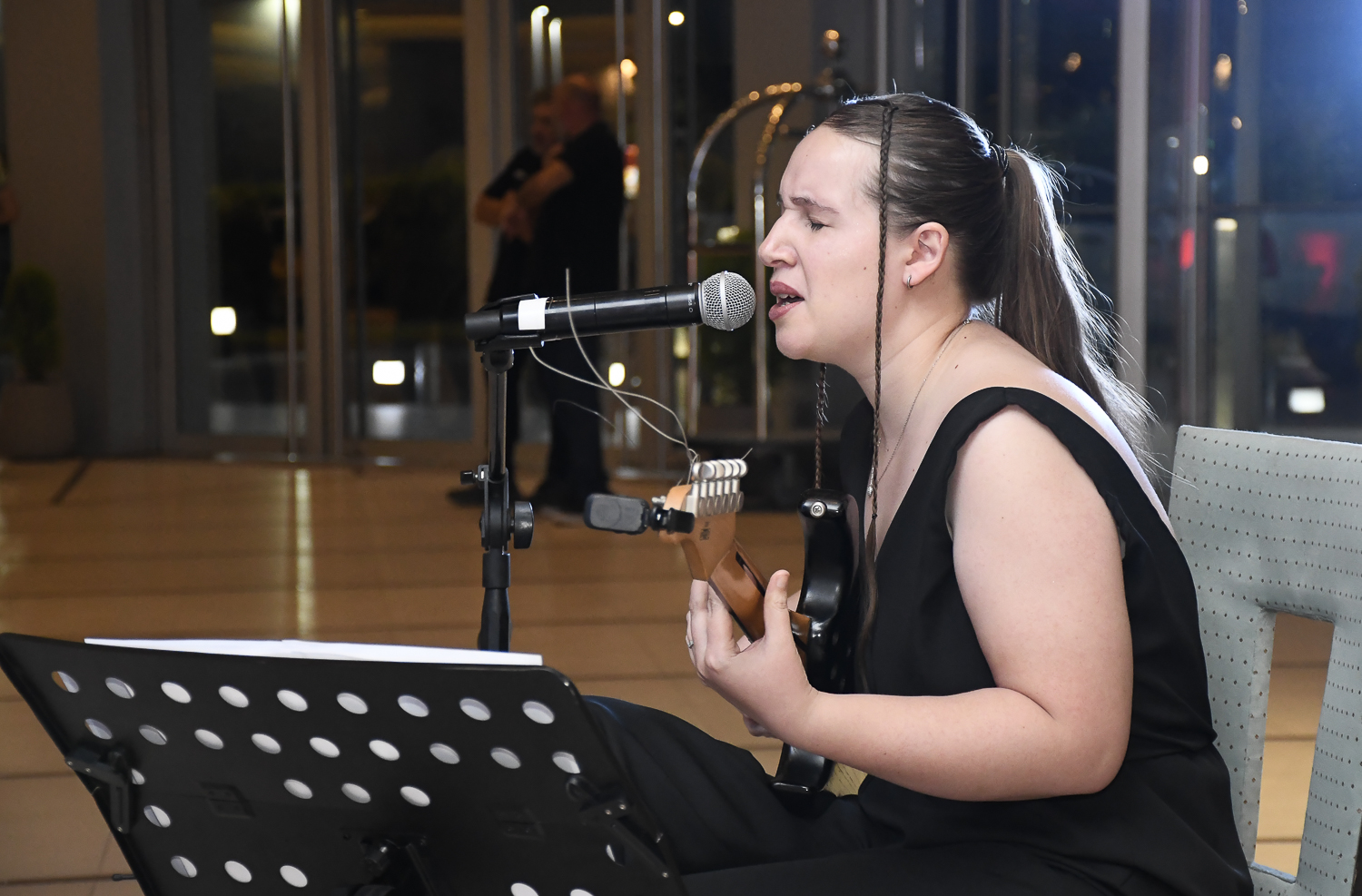 Durante la apertura, el público pudo disfrutar de un segmento artístico en vivo a cargo de Iara Giudice, integrante de la Orquesta Municipal de Guitarras Tito Francia, interpretando música latinoamericana en español e inglés, con un suave estilo folk.